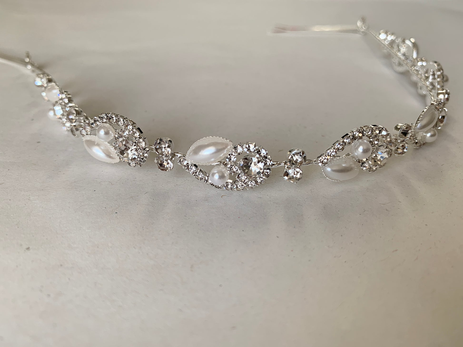 Bridal Crystal and Pearl Headpiece | Silver Rhinestone Wedding Hair Accessory