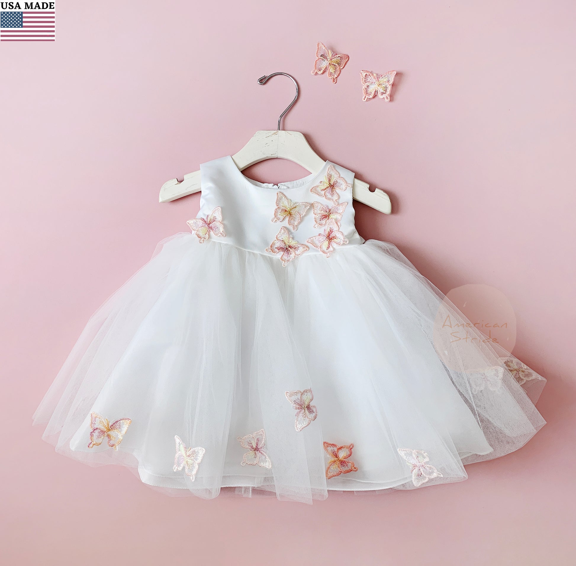 USA Made | Baby Butterfly Dress with Matching Hair Clips | Toddler Satin & Tulle Flower Girl Dress | Birthday Parth Dress