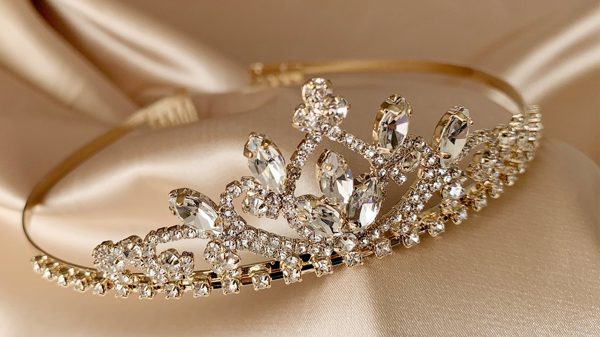 Gold Crystal Flower Girl Tiara – Dainty Rhinestone First Communion Headpiece